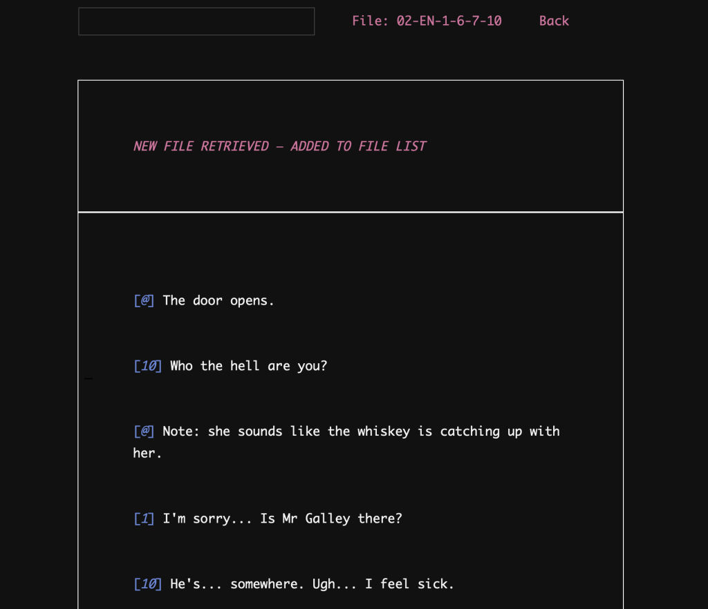 La récompense la plus disputée au vu du nombre de jeux d’enquête auquel j’ai joué cette année. Mais l’enquête purement textuelle de Type Help, qui nous présente des verbatims de scènes et nous demande d’en déduire les scènes d’après et d’en apprendre plus sur les personnages, leurs motivations, et surtout ce qu’il se passe est brillante. Il est à la fois assez logique et simple (sans être trop susceptible aux méthodes par force brute) de trouver les différentes scènes, mais comme un Her Story par exemple, comprendre ce qui se trame est autrement plus ardu et moins guidé. Formellement très élégant, j’ai du mal à voir comment le remake prévu (renommé The Incident at Galley House au passage) pourra retranscrire les forces d’évocation et d’obfuscation de celui-ci.